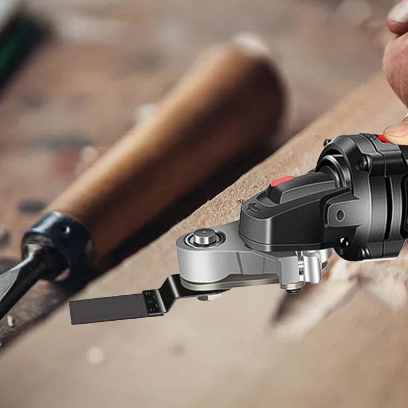 - [Conjunto completo incluido]: el paquete viene con 2 hojas de sierra, paquete de tornillos, cabeza de herramienta oscilante, adaptador de herramienta, llave, eje excéntrico, mesa de triangular y papeles de lija.