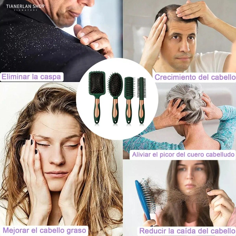 Funciona En Varios Tipos De Cabello: Este cepillo de pelo Set Contiene 4 cepillos para el cabello, que son rizar peine, peine plano, ovalada Air-Cushion Peine, Plaza Air-Cushion Peine, Peine Set Con Multi-Estilo de combinación para satisfacer sus diferentes necesidades ,DiseñAdo Para Ser Utilizado En Cabello HúMedo O Seco, Este Cepillo Elimina FáCilmente Todos Los Nudos Y Enredos. Se Puede Utilizar En Extensiones Rectas, Rizadas, Naturales, Delgadas, Gruesas, Rizadas, Encrespadas, E Incluso Pelucas.