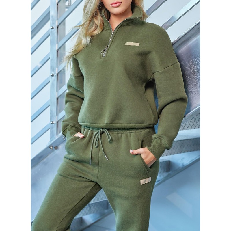 Herseas 2 Piece Lounge Set Outfits for Women Half Zip Collared Long Sleeve Sweatsuits with Jogger Sweatpants Lounge Set Green X-Large 16 18