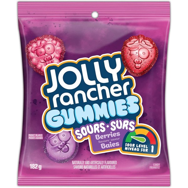 Get ready to experience the perfect balance of sweet and sour with Jolly Rancher Gummies Sours in irresistible berry flavors! Each 182g (6.4 oz) bag is packed with chewy, flavorful gummies that deliver a burst of tart and sugary goodness in every bite. These mouthwatering gummies are perfect for satisfying your candy cravings, whether you're on the go or at home.