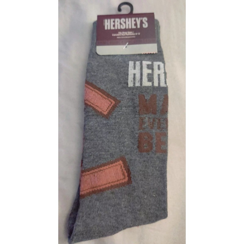 Crafted from 97% polyester and 3% spandex, these socks are lightweight, breathable, and machine washable for easy care. The socks are perfect for all seasons.  Whether you're looking for a fun addition to your sock collection or a unique gift for a loved one, these Hershey's socks are sure to bring a smile to your face.