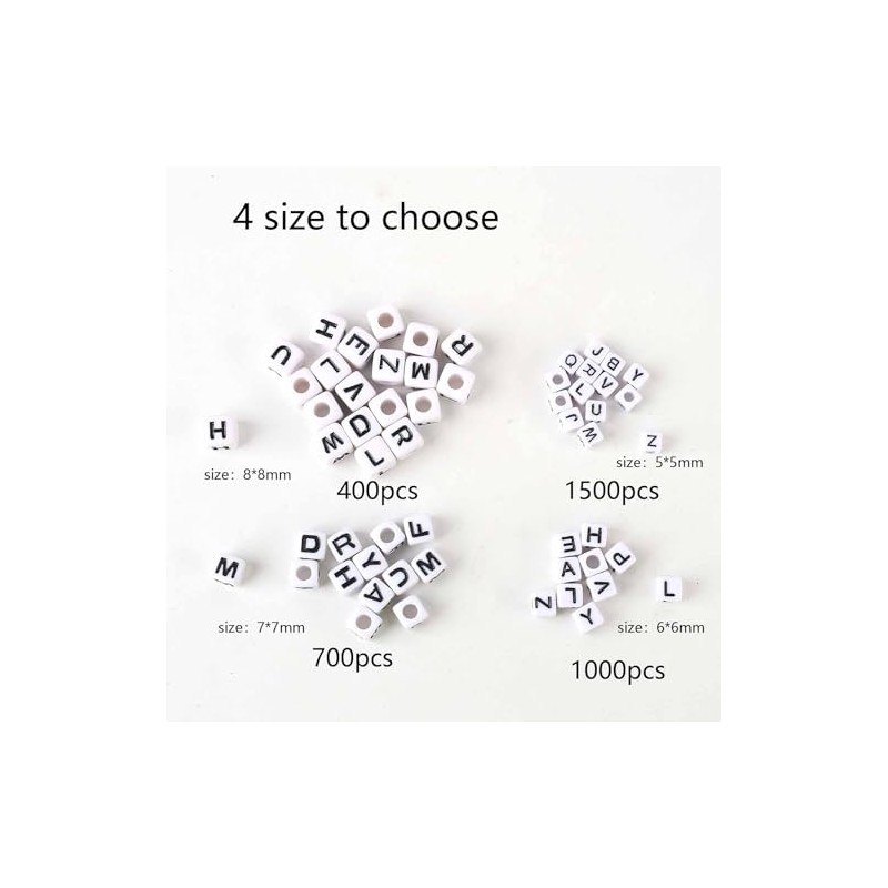 - Cube letter beads size: diameter 7 mm, thickness 7 mm, hole approx. 3.4 mm