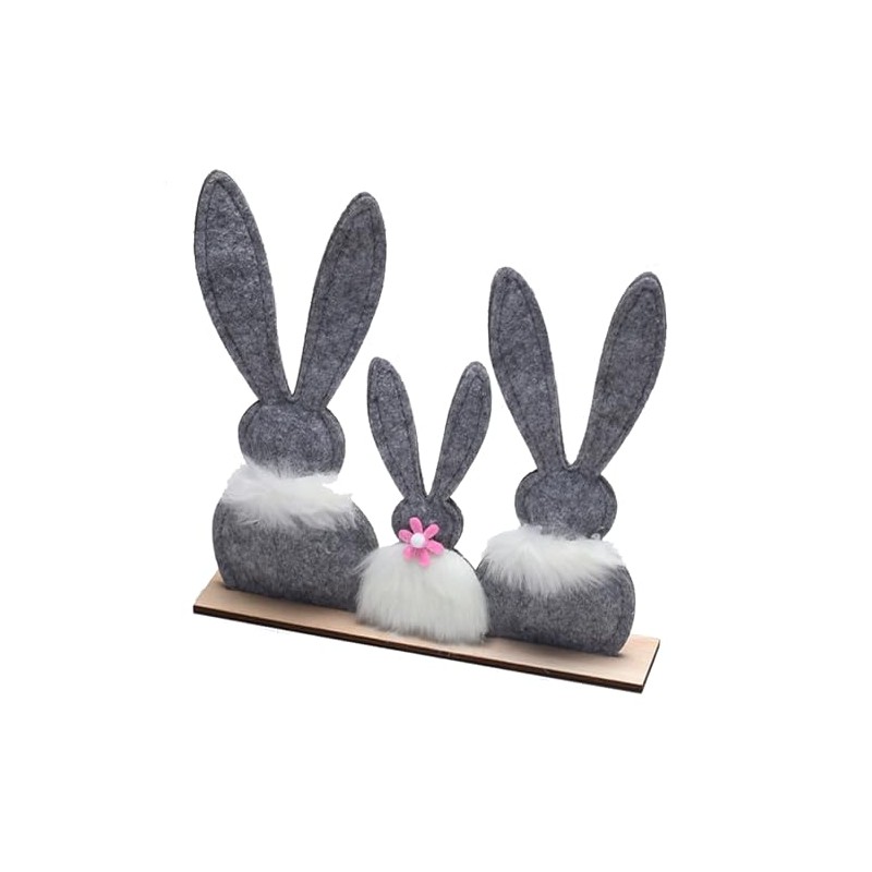 - Our Easter bunnies are made of lightweight felt material and include a wooden base for easy standing