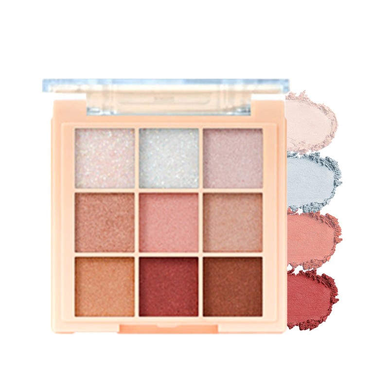 - 【3 種質感網羅,グラデーションメイクに最適】全 9 色が濃淡調和し,マット色で眼窩加深、ラメ色で華やかさ付与、パール色で涙袋提亮が可能。グラデーションメイクを 1 台で完成,初心者でも「打底→遷移→重点色」の順で簡単操作。粉末は細かく服帖性良く,亚洲人肌色(黄皮含む)に馴染み汚くなりにくいコスメです。