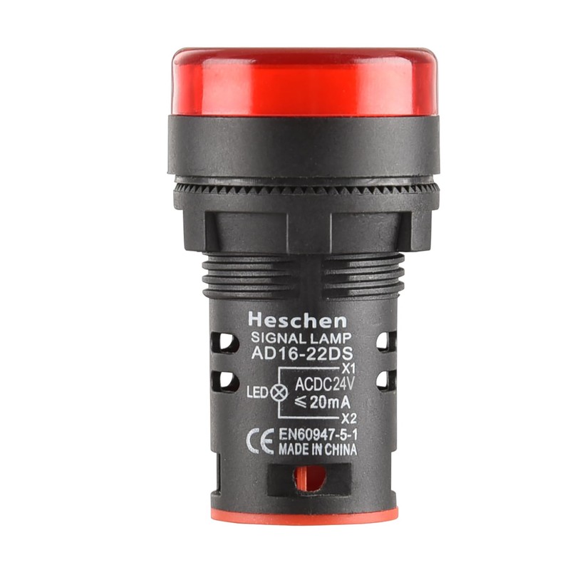 Heschen 22 mm LED Indicator Light AD16-22D/S 24VDC 20mA Red Light Colour Pack of 5