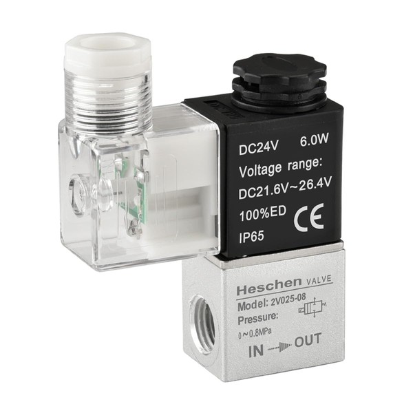 Heschen 電気空気式ソレノイドバルブ 2V025-08 24VDC PT1/4 2/2 ウェイ ノーマルクローズ