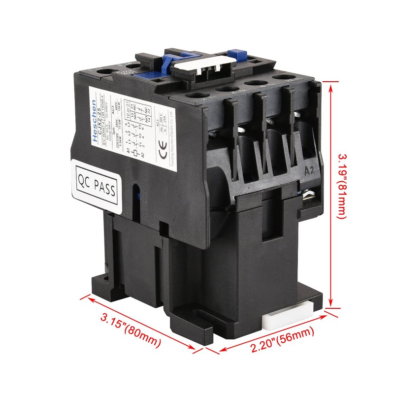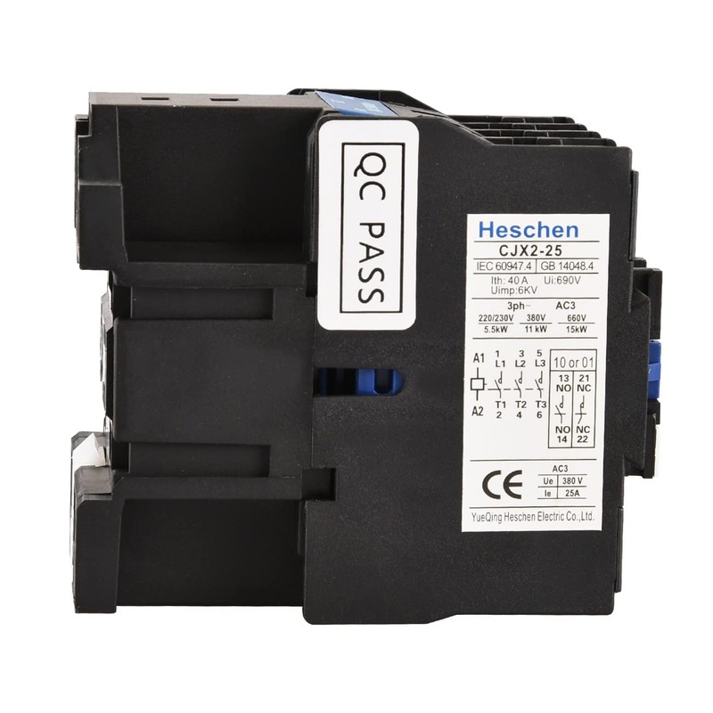 Heschen AC Contactor CJX2-2510 220V 50/60Hz Coil 3P 3 Pole Normally Open Ie 25A Ue 380V