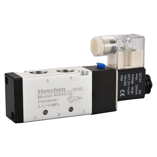 heschen Electric Pneumatic Solenoid Valve 4V310-10 12VDC PT3/8 5 Way 2 Position CE