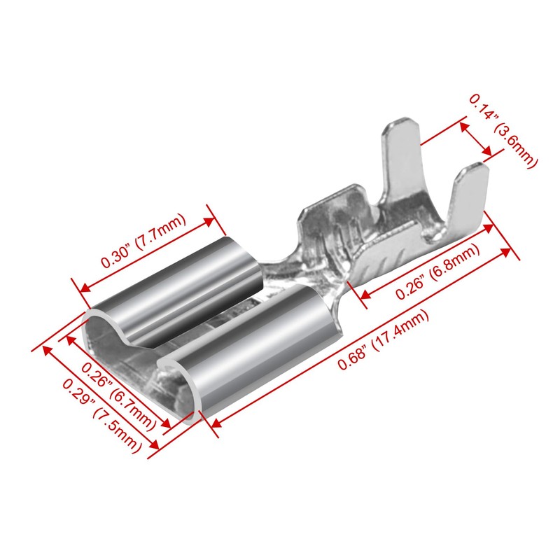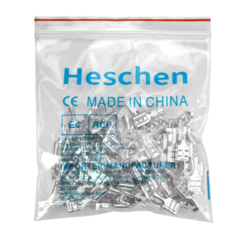 Heschen Female Spade Quick Splice Crimp Terminals, 6.3mm Crimp Connector, Non insulated, 100 Pcs