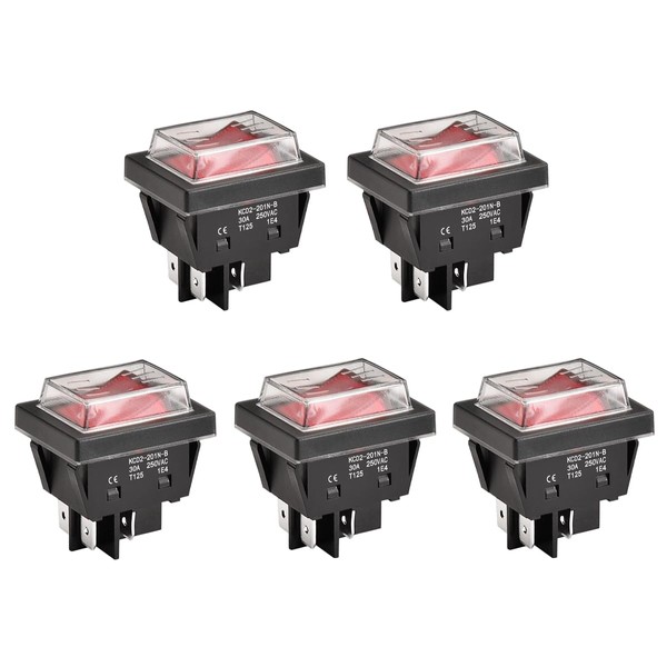Heschen High Current Rocker Switch, 30A 250VAC, ON-OFF 2 Position, DPST, 4 Terminals, Red Light, T125, with Waterproof Cover (5, Red)