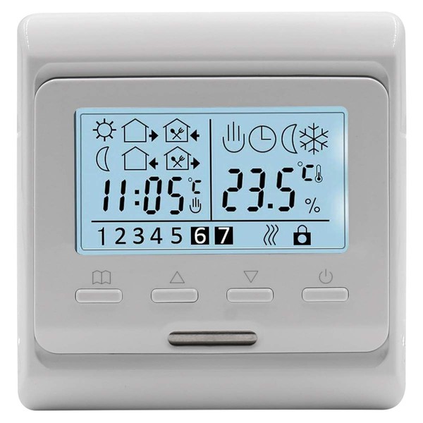Heschen LCD Digital Weekly Programming Thermostat, HS-E806, 230 VAC 3 Amp, Regulator for Underfloor Heating Thermostats, Suitable for Water Heating Systems