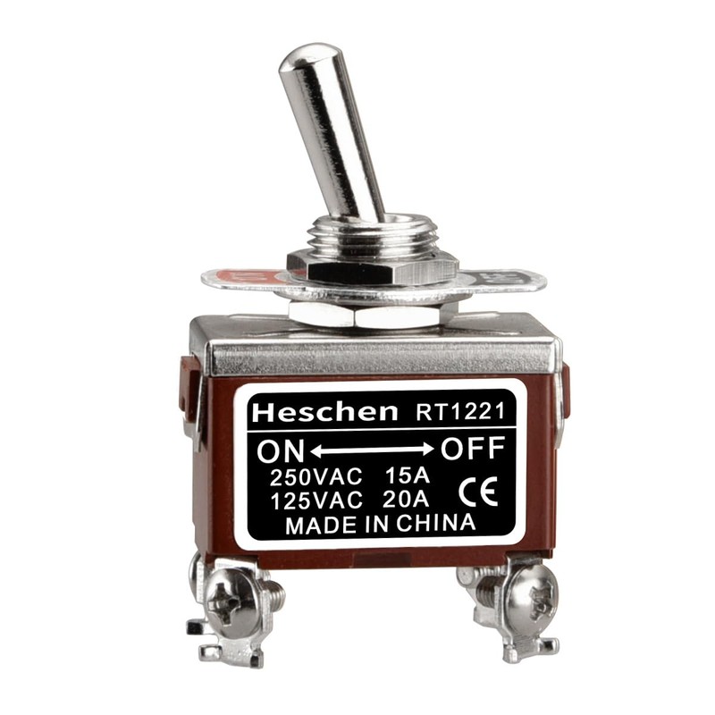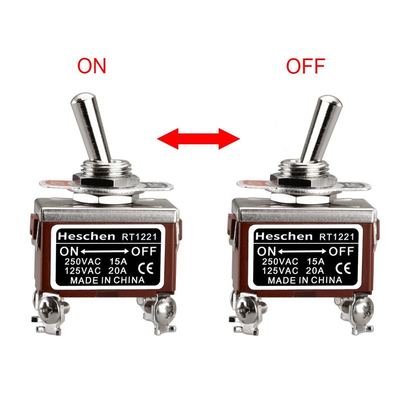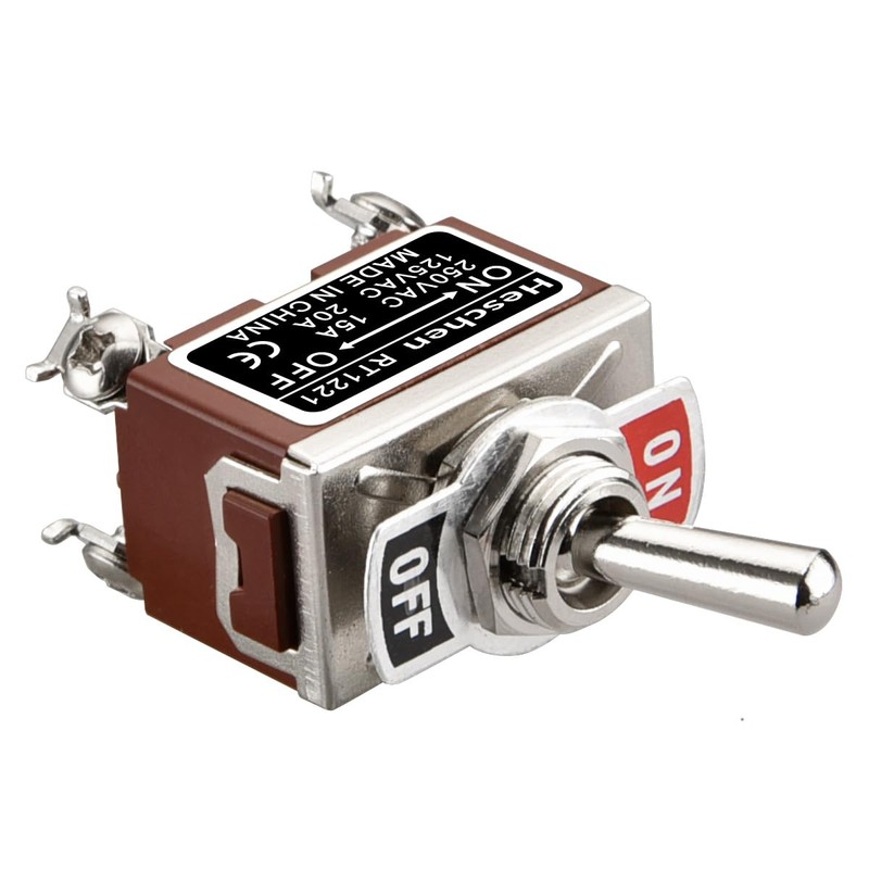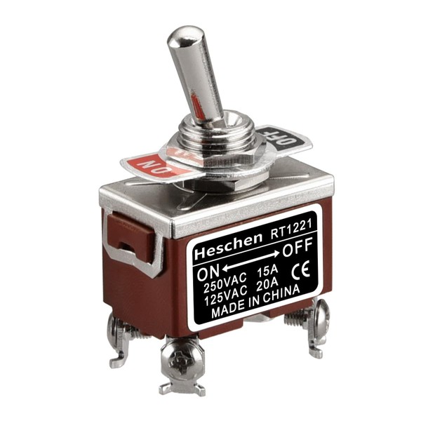 Heschen Metal Toggle Switch, RT1221, Toggle Switch, Double Pole Double Toggle Switch (DPST) with 2 Positions On/Off, 15A 250VAC, CE Marked