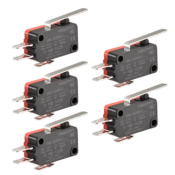 Heschen Micro Switch, V-162-1C25, SPDT, Short Hinge Lever, 16A 250VAC, 5 Pieces