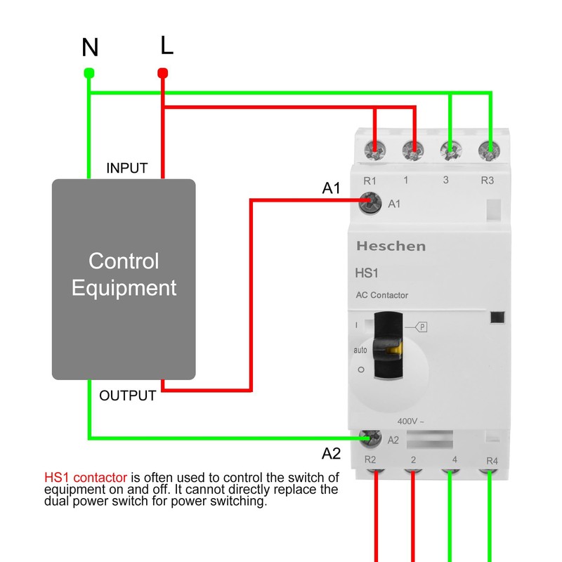 Heschen Modular Household AC Contactor, HS1-63M/22, 63A, 4 Pole, 2NO 2NC, 220VAC Coil, 35mm DIN Rail Mounting, with Manual Control Switch