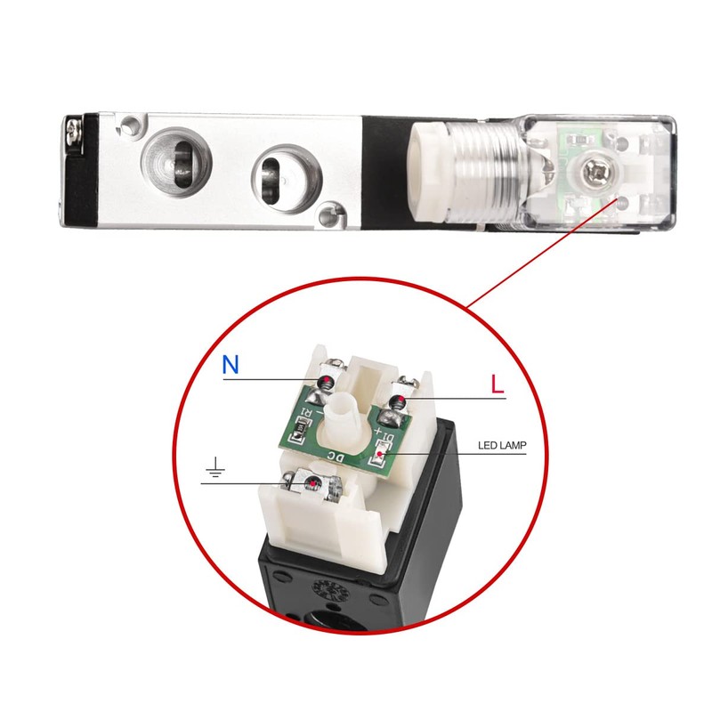 Heschen Pneumatic Solenoid Valve, 4V210-08 12VDC, PT1/4 5W, 5-Way 2 Position Single Coil