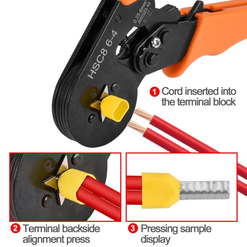 Heschen Twin Crimp, TE6014, AWG10 x 2/2 x 6 mm², Twin Wire End Ferrules, Twin Wire End Terminals, Length 14 mm, Yellow (100)