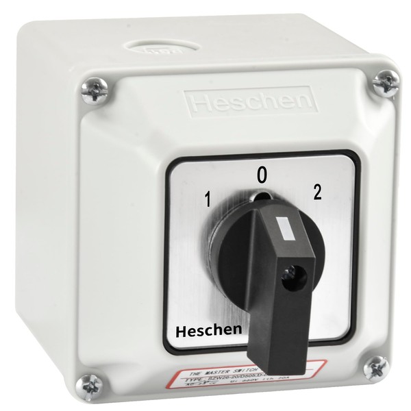 Heschen Universal Locking Cam Selector Switch, SZW26-20/D505.5D-BX, 660V 20A, ON-OFF-ON 3 Positions, 20 Terminals, with Main Switch Outer Box, CE