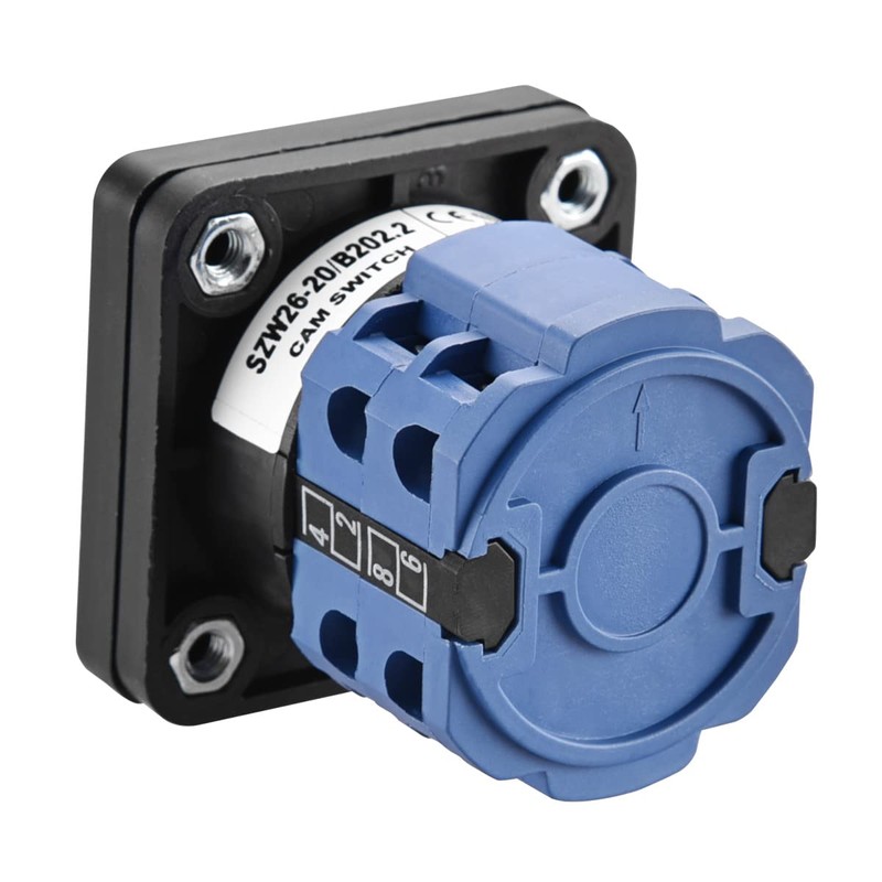 Heschen Universal Rotary Cam Selector Changeover Switch, SZW26-20/B202.2, ON-OFF-ON, Momentary, 660V, 20A, 3 Position 2 Phase 8 Terminal, CE
