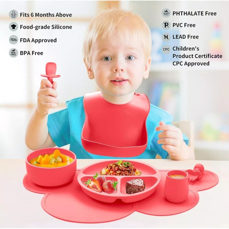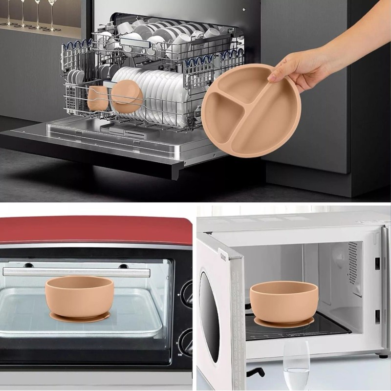 DISHWASHER AND MICROWAVE SAFE: You don't have to worry about scrubbing or hand washing as this silicone baby feeding set is designed to be dishwasher safe, you can also trust in the microwave, knowing it's safe and won't melt nor is it deformed due to HIGH TEMPERATURE IS.