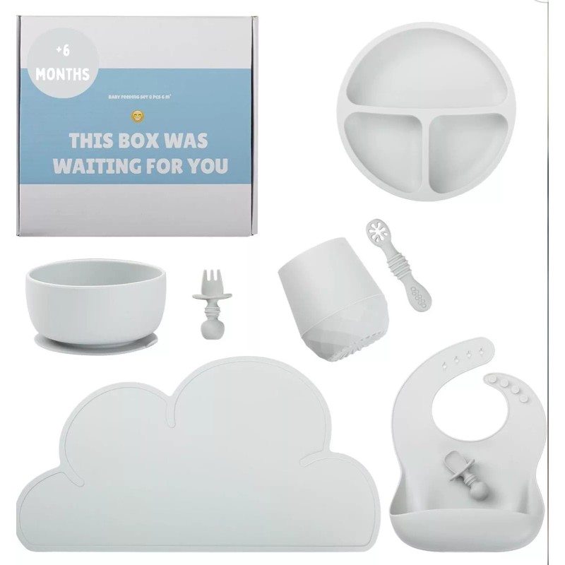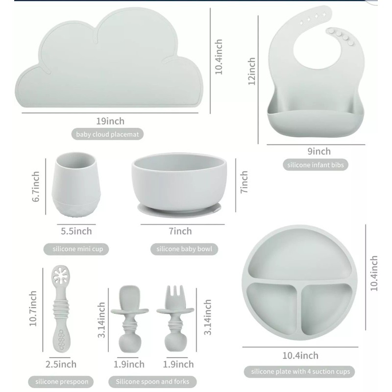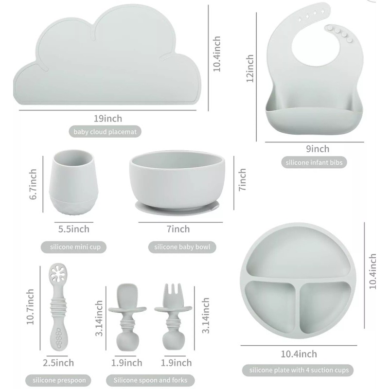 Hesstian Set of 8 silicone pieces for feeding babies. Available in three colors.