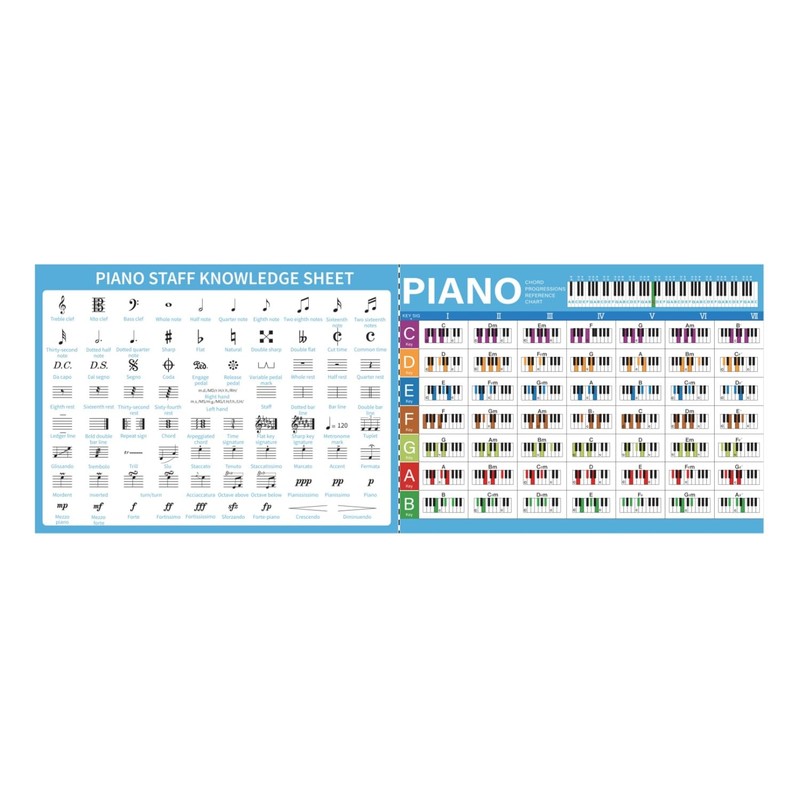 - 【Dual-sided learning tools】 The piano chord chart provides most of the chords, music symbols and piano keyboard & staff notation guide that you will ever need to know on the piano. It is an essential tool for all piano player, piano reference poster of learning piano theory system.