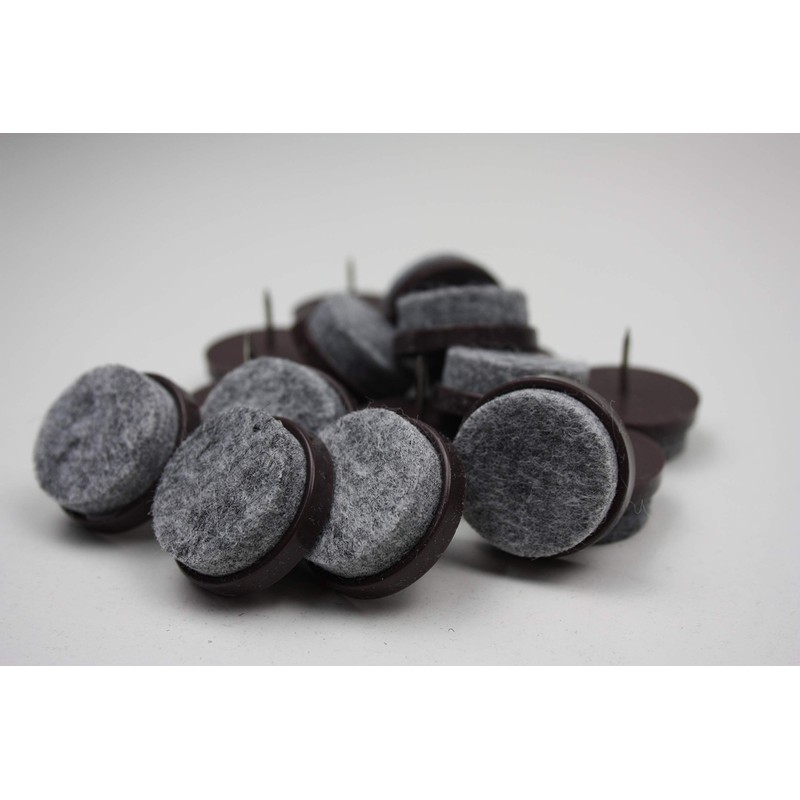 Hettich HKB® Pack of 16 Felt Pads with Pen, for Nailing, Felt Glides for Tables and Chairs Grey/Brown, Diameter 28 mm, with Nail, Pack of 16