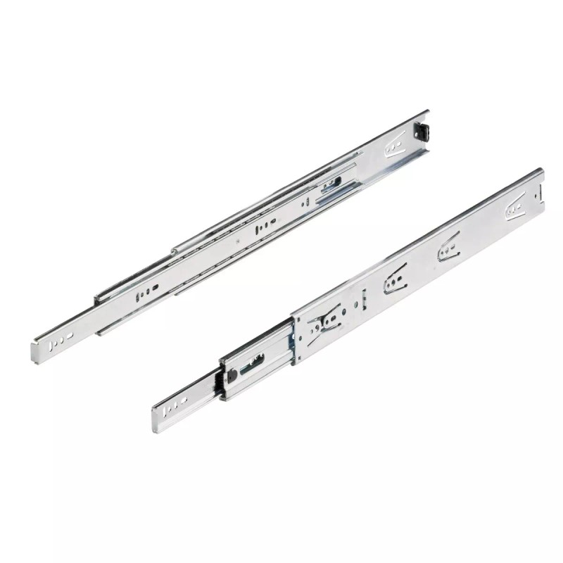 - Telescopic precision over extension slide with pull-out stop and roll-out prevention