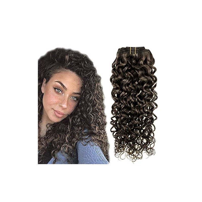 Hetto Brown Highlight Curly Clip in Hair Extensions Real Human Hair Curly Hair Extensions Brown Highlight Ash Brown Clip in Culry Natural Wavy 7Pcs 20Inch