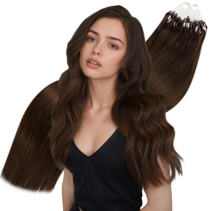 Hetto Brown Micro Ring Hair Extensions Straight Human Hair 22Inch Micro Loop Extension Real Human Hair Micro Beads Hair Extensions #4 Dark Brown 50 Strands 50g
