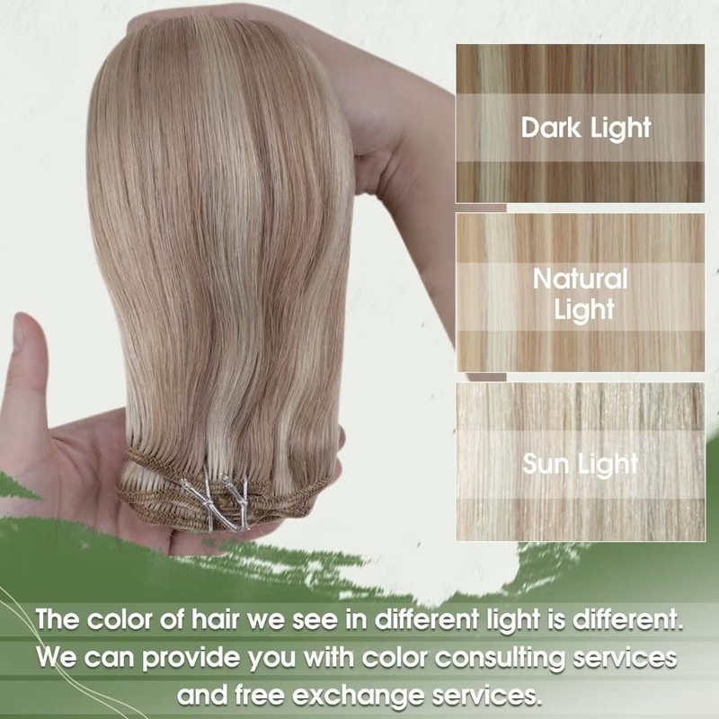 Hetto Real Hair Clip-In Extensions, Blonde Clip-In Real Hair Extensions, Natural Clip-In Hair Extensions, Ash Blonde with Bleached Blonde #18/613 120 g 45 cm