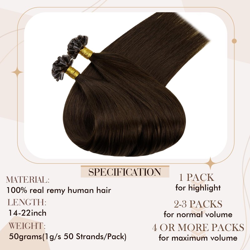 - Hetto human hair bonding extensions, 50 g per pack, 50 strands, we usually recommend 2–3 packs for a full head. Hetto bonding extensions contain more than N+ mixed colours with the U-tip hair extensions. Of course, you can also mix and match colours as you like to create your own unique hair extensions.