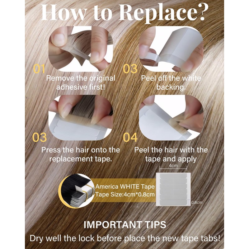 - [Simple and convenient] : Easy to install and remove. Tape in extensions can be used repeatedly with replacement tape. Comfortable ,strong, invisible . Heating the tape while wearing it will make it stronger.