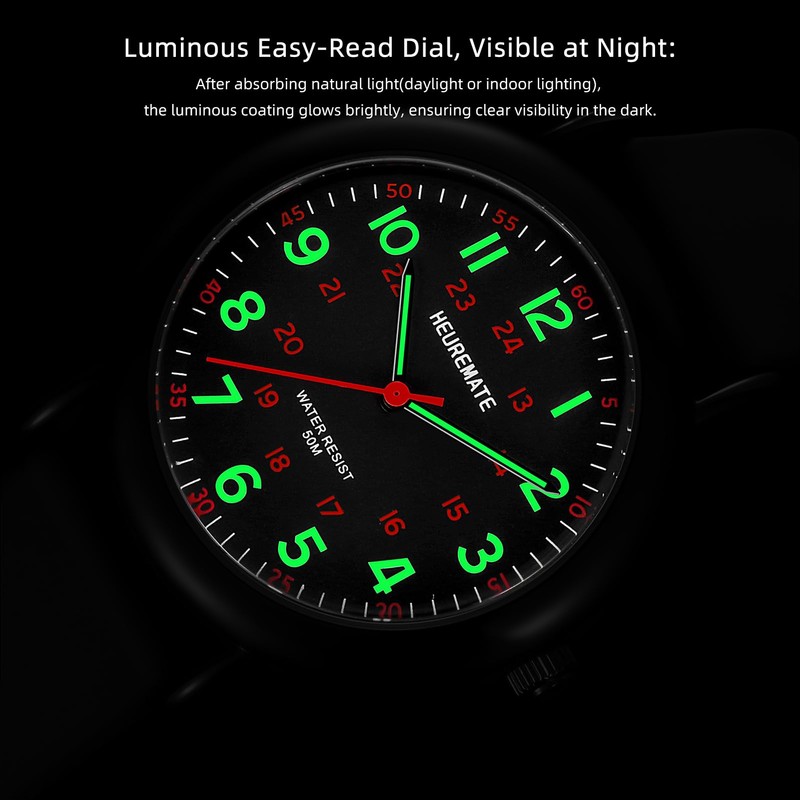 HEUREMATE 5ATM Waterproof Simple Unisex Analog Watch, Medical Professional Nurse Watch with Luminous Easy-Read Dial, Military Time, 24-Hour Second Hand, Silicone Band for Students, Fashion Women Men