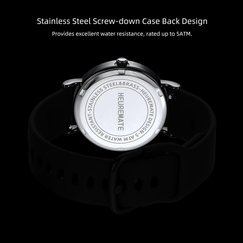 - Durability & Comfort: Soft, breathable 100% silicone band equipped with quick release spring bars for easy cleaning. Silver-tone 37 mm brass case with a polished finish and mineral glass crystal that is wear-resistant and scratch-resistant. This waterproof watch is water resistant up to 50m (5ATM), making it suitable for various conditions, including work environments. Durable enough to be considered a military watch and sports watch.