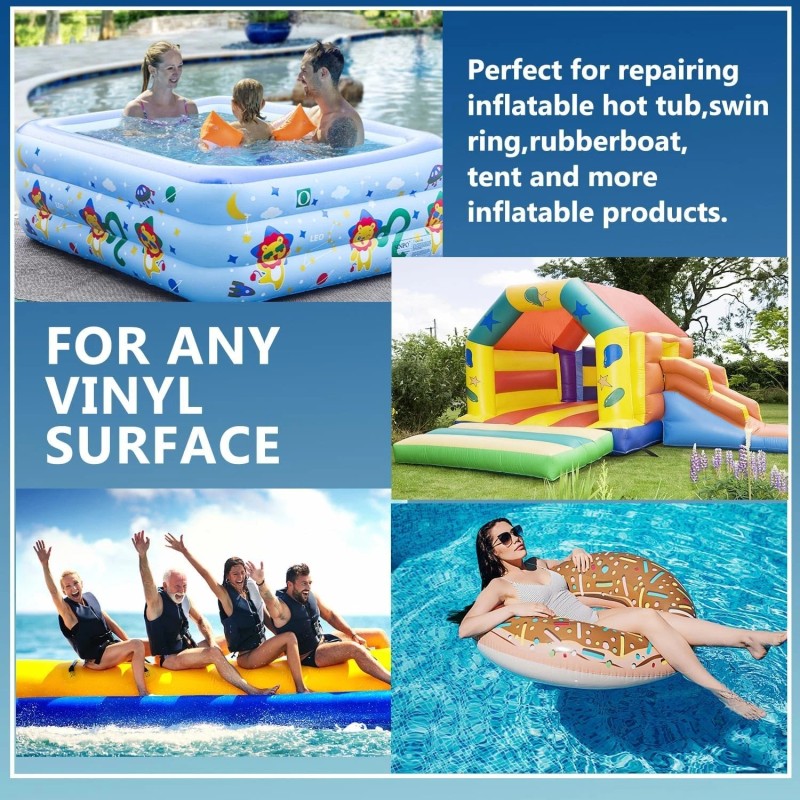Suitable for PVC inflatable toys, swimming pool, above ground pool, air mattress, air sofas, airbed, inflatable boats, kayaks, children's castles, air cushions, beach balls, yoga balls, swimming circles, tents, canopies, PVC pools, PVC trampolines, PVC waterproof clothes, and other inflatable toys.