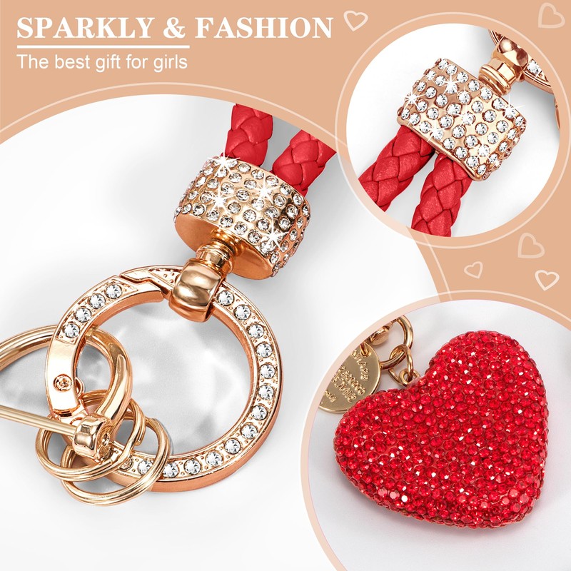 • Glitter heart keychain: our keychain surface is designed with rhinestones, when in the sun or under the light, the rhinestones reflect different light, unique and elegant, improve your overall temperament.