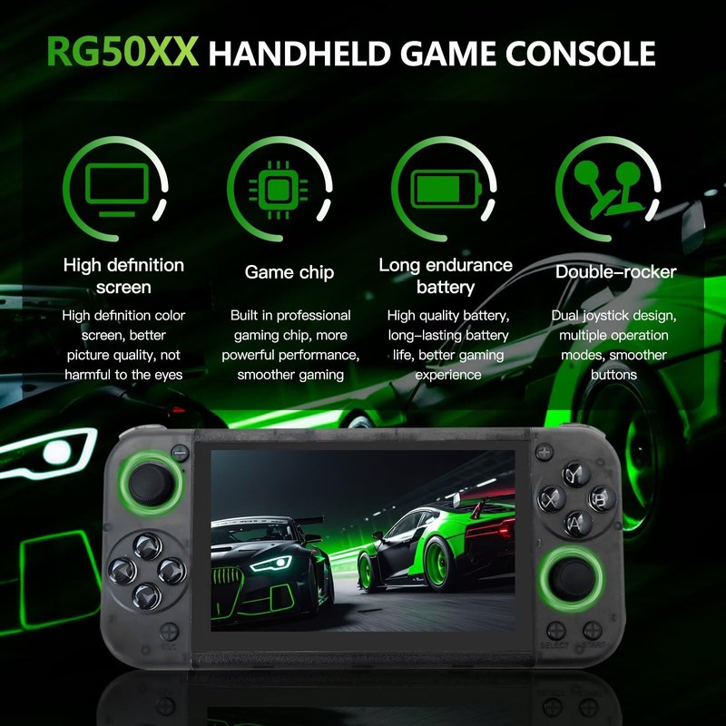 Hevituwhe 2025 Update RG50XX Retro Handheld Game Console with 5.0 Inch Screen 64G TF Card, Portable Retro Game Console Support
