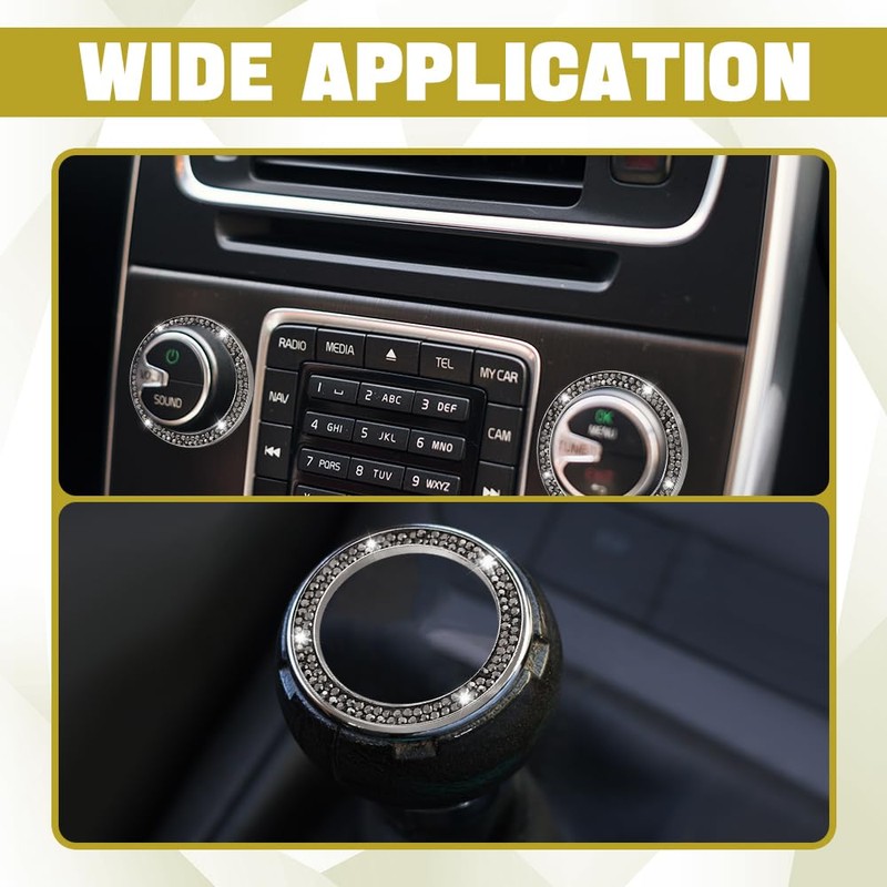 - [Wide application] : This car interior decoration rhinestone sticker is suitable for most models, such as cars, trucks, SUVs, vans, etc. It can be used for automobile engine start/stop button, automobile air conditioning knob, radio switch, gear shift lever, etc, which is very practical. The shiny shape is very suitable for decorating your car, please measure the size of your car starter before buying, and carefully check the size information of the car crystal ring to ensure a perfect match.