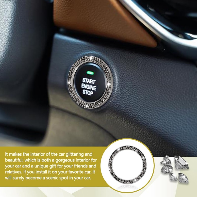 - [Unique design] : The surface of this push to start button cover is inlaid with a ring of very shiny rhinestones, which is very dazzling. Installed in your car, it can not only provide protection for your starting device, but also a bling car accessories, highly decorative, to add a bright color to your car, increase the fun of driving, make you happy. The start button bling ignition ring is available in several colors, each color is very bright and bright.