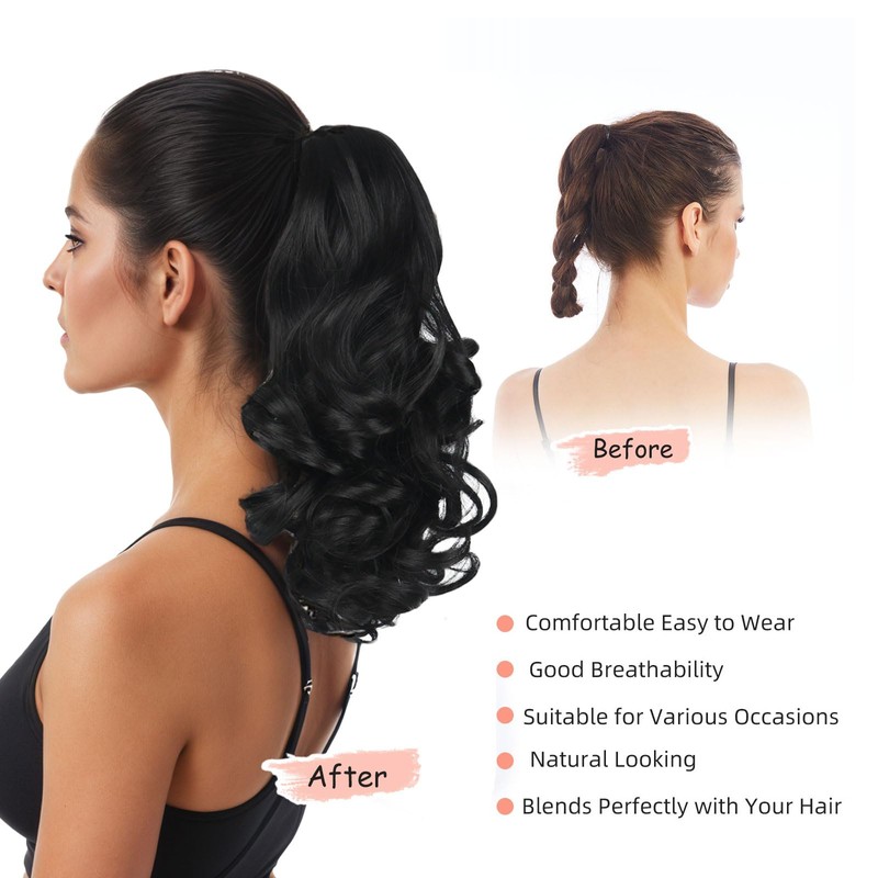 ● Designed with a clip closure, HEWEICSY Ponytail Extensions create a secure clip-in ponytail that will stay in place and leave you with a voluminous mane all day. Transform a simple ponytail into a sophisticated, sexy and sleek fashion statement.