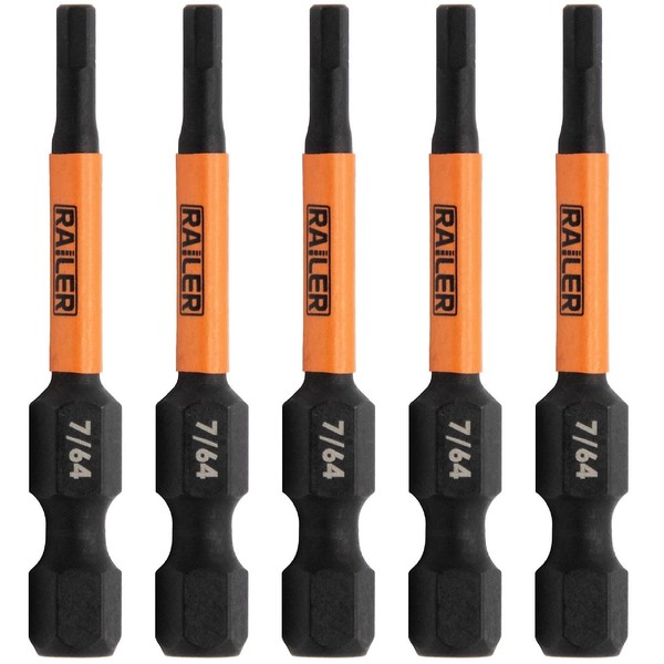 Hex 7/64" Impact Driver Bit - Railer Allen Wrench Drill Hex Bits. 1/4 Quick Release S2 Steel 2 inch 7/64" Hex Bits. (5 Pack)