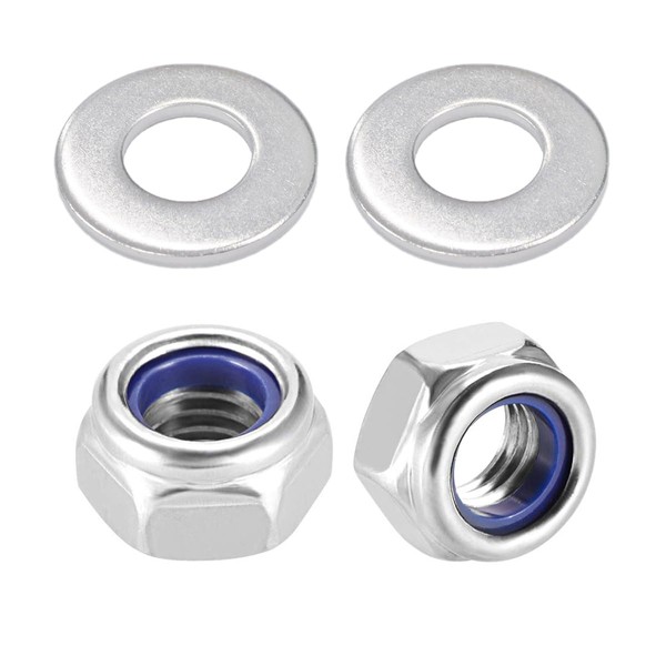 Hex Lock Nuts M8x1.25mm 10pcs Nylon Lock Nuts Height 8mm Hex Width 14mm 304 Stainless Steel Nylon Insert Self Locking