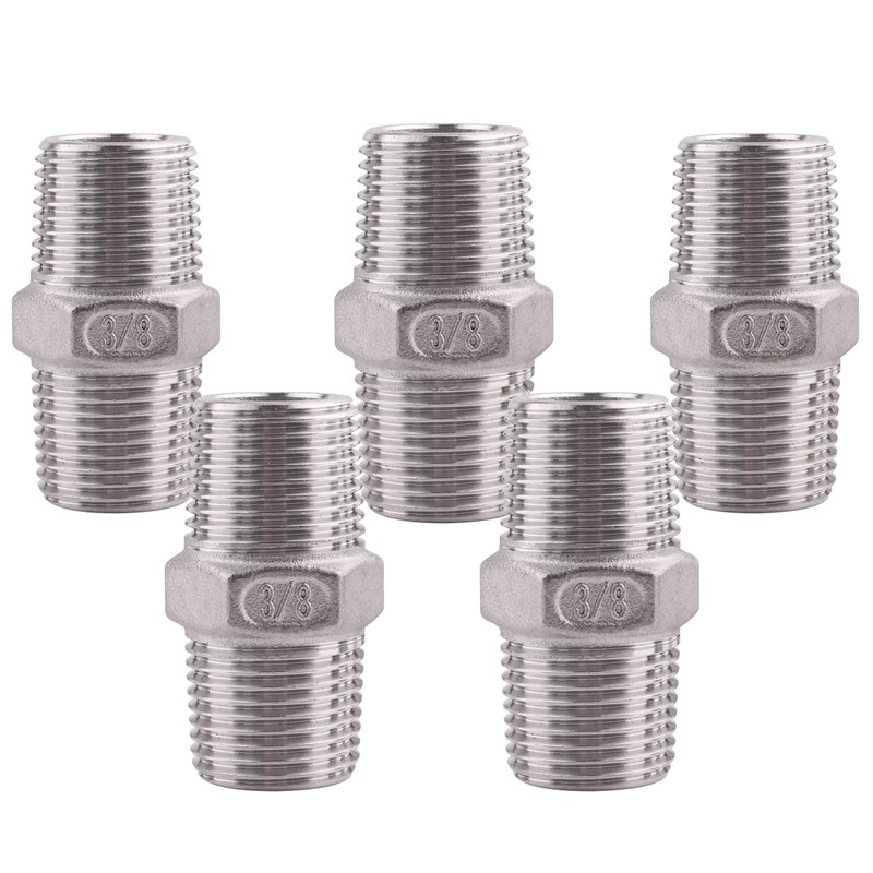 Hex Nipple 3/8 Inch Male NPT - DERPIPE Stainless Steel 304 Threaded Pipe Fitting for Brew Kit, Home Piping Application(Pack of 5)