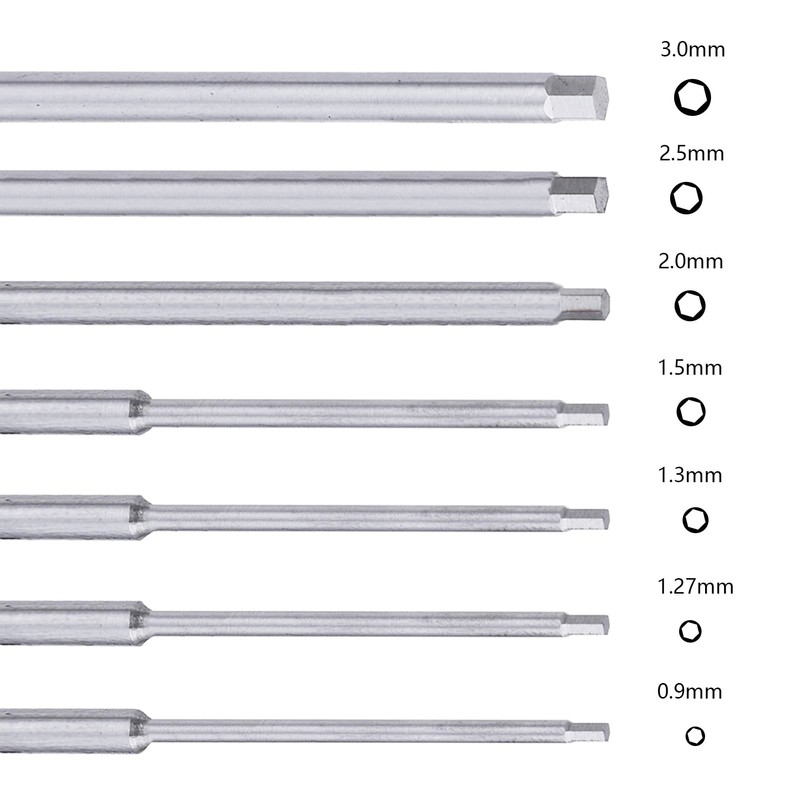 - Package include : 0.9mm 1.27mm 1.3mm 1.5mm 2.0mm 2.5mm 3.0mm Hex Driver Set