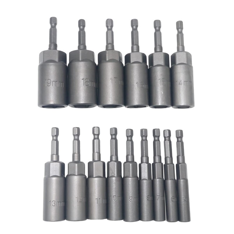 Hex Shank Deepened Socket Wrench Nut Driver Power Screw Drill Bits Tools Set 5.5mm~19mm 15-Pieces
