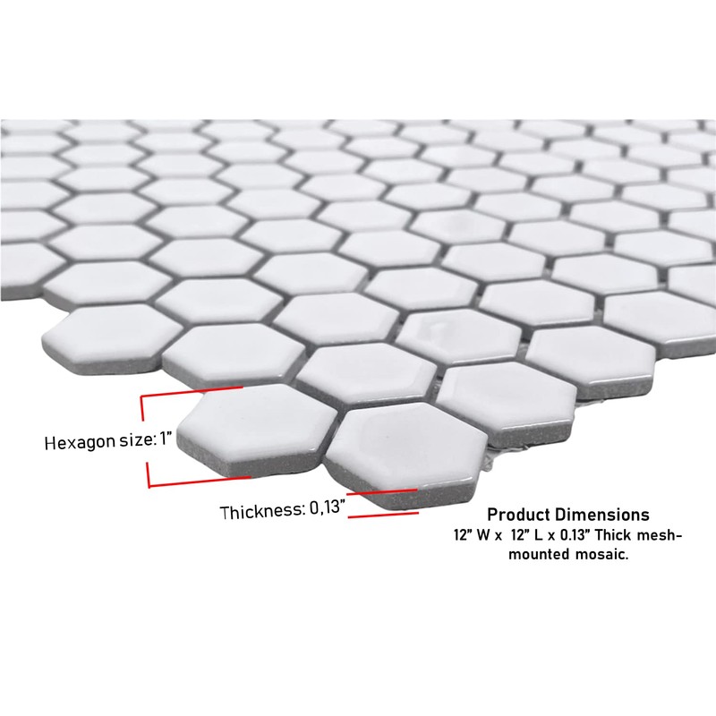 Hexagon 1 Inch White Glossy Porcelain Wall and Floor Mosaic Tile for Kitchen Backsplash, Bathroom, Accent Wall