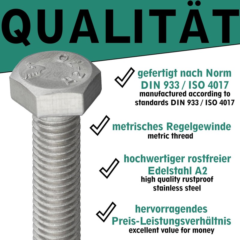 - According to standard: DIN 933.