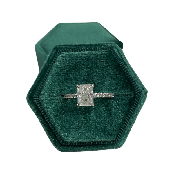 Hexagon Velvet Ring Box 1 Slot For Engagement & Wedding Ceremony Flat Lay Display & Storage (Emerald green)