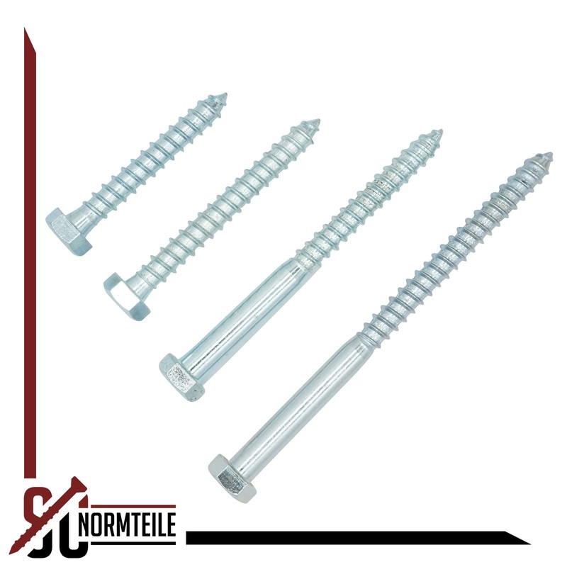 The screws are suitable for all stable and heavy connections in wood. A wrench or socket wrench (or socket) is required for installation. In addition to being used in wooden constructions, the hexagonal wood screws are also used in conjunction with a dowel in rock or concrete (e.g. Fischer dowels; also available in our range). Other applications: