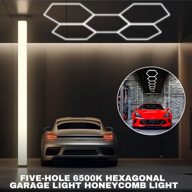 Hexagonal LED Garage Lights Honeycomb Detailing Showroom Office 5 Grids 14400LM